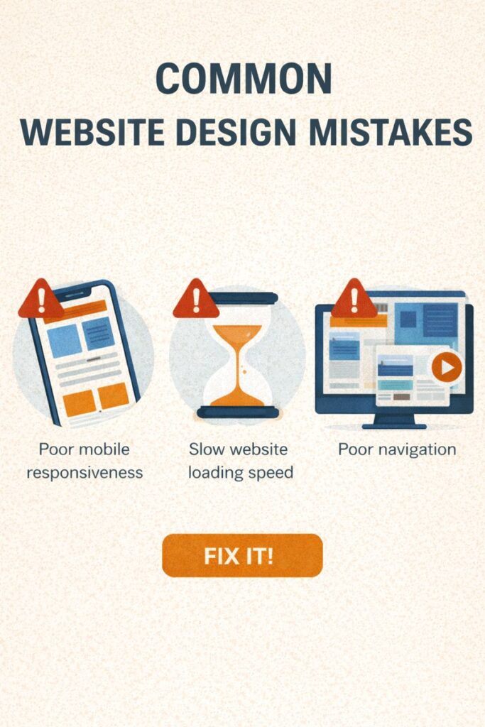 A website is often the first impression a customer has of a business. Even if your products or services are excellent, poor website design can drive visitors away within seconds. Many businesses unknowingly make website design mistakes that negatively affect user experience, search rankings, and conversions.